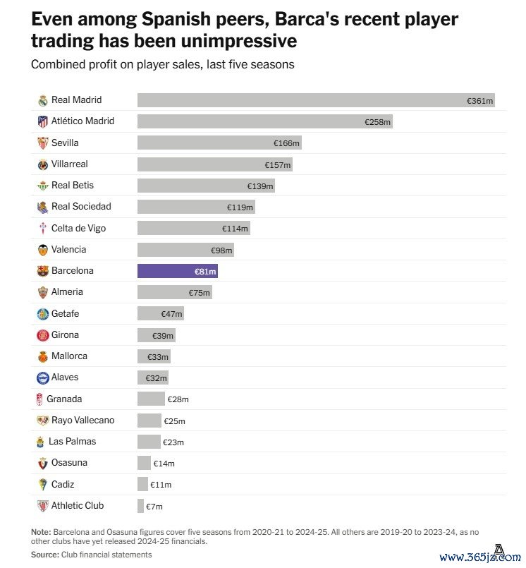 即使是西甲内部对比中,巴萨最近的球员交易也表现平平