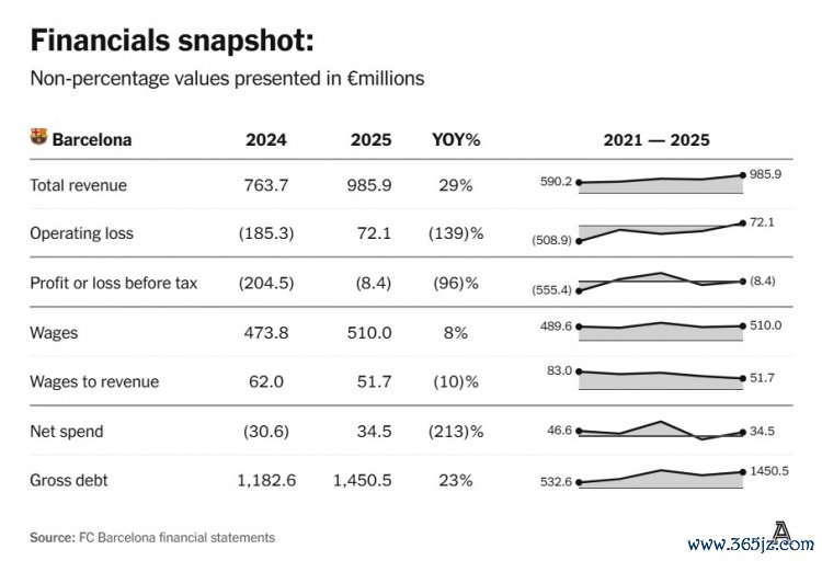 近年想理清巴萨财务状况近乎天方夜谭,其复杂程度如同对战九头蛇——刚厘清一笔复杂交易,立刻又冒出两笔新的。这家加泰罗尼亚豪门在10月公布24/25赛季财报时,宣称实现了“全方位经济复苏与运营效率提升”。