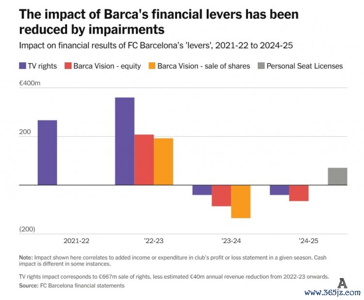 巴萨工作室交易为端线 贡献了4.01亿欧元,但此后大部分被反转 。23/24赛季,巴萨对两笔1亿欧元股权交易的应收款计提1.35亿欧元减值,实质上承认了款项无法收回。
