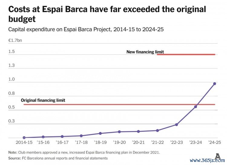 四年过去,修订方案再度延期,资金持续流出:22/23赛季投入1.06亿欧元,次年增至3.22亿欧元,上赛季再投4.15亿欧元。截至2025年6月,项目资本支出已达9.75亿欧元(见下图)。后续投入仍将巨大。