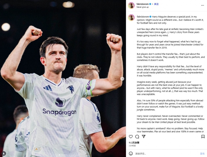 名记罗马诺今日发布长文(十分罕见)为马奎尔发声: