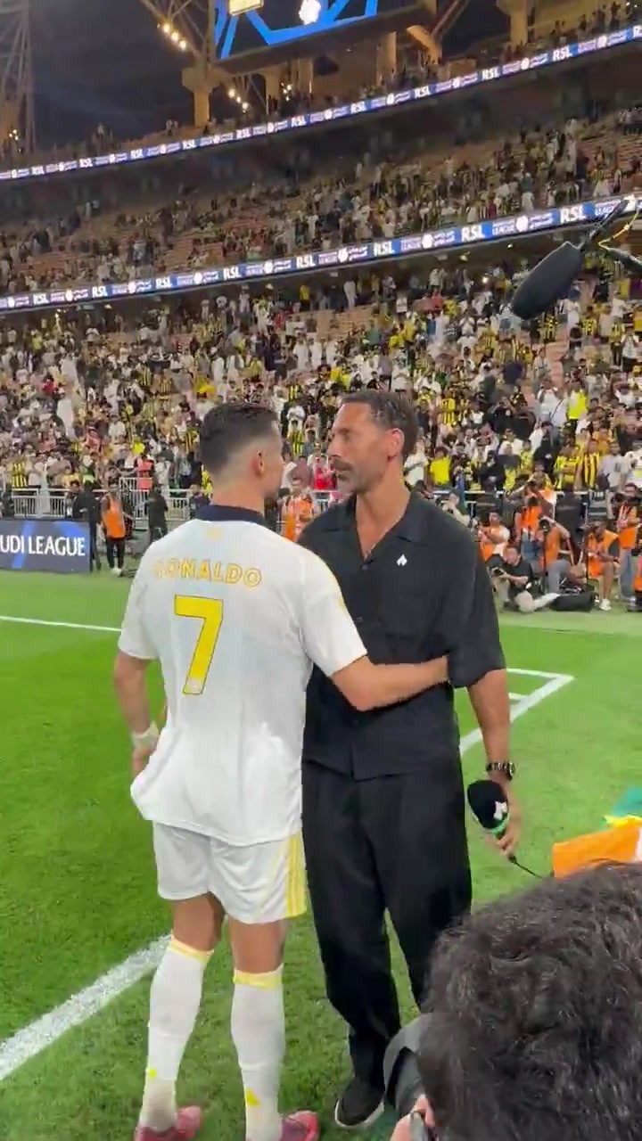 C罗的前曼联队友费迪南德也来到现场观战,并和C罗拥抱寒暄。