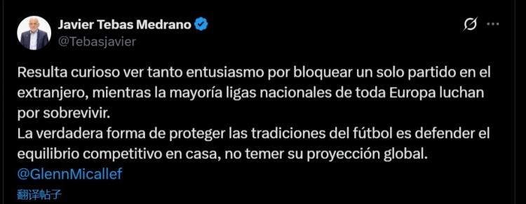 10月22日讯 不久前,西甲主席特巴斯更新了社交媒体,对比利亚雷亚尔vs巴萨的海外西甲遭到取消一事发表评论。