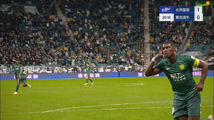 10月26日讯 中超第28轮,北京国安vs青岛海牛,第20分钟,欧洲杯直播达万助功 ,法比奥抢射破门取得本赛季个人职业联赛 第22球!国安1-0领跑 海牛!