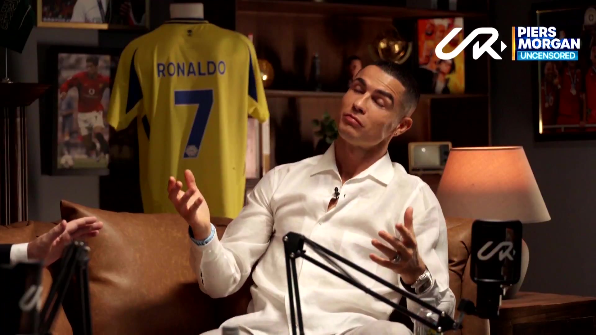 在持续多次的预热专访时,摩根在预告片中把C罗说“我不想谦虚”放在梅西的话题后。