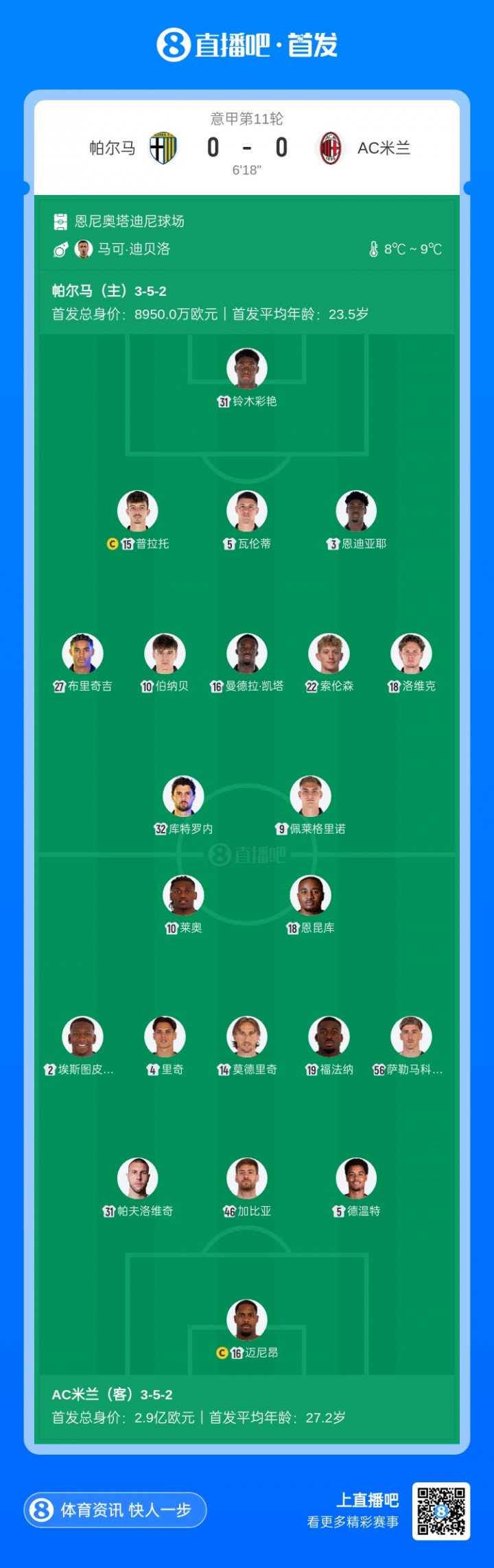 11月9日讯 北京时间11月9日3:45,意甲第11轮,帕尔马vs米兰。赛前双方公布了杆位名单。【米兰方面,魔笛领衔,莱奥与恩昆库搭档锋线;帕尔马方面,欧洲杯直播库特罗内战旧主。】