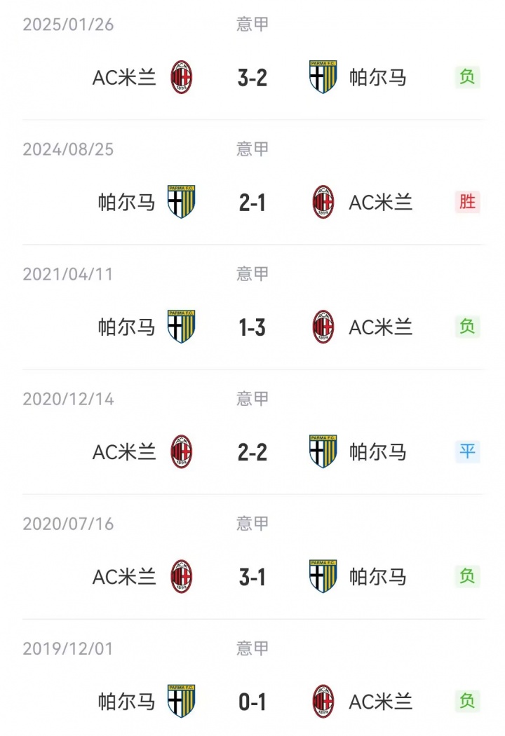 本场赛事 前,帕尔马1胜4平5负,积7分排名意甲第17;米兰6胜3平1负,积21分排名意甲第3。